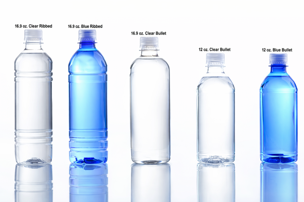 Spring Water Promotions bottles pure spring water straight from its protected, high quality source in the mountains of Blue Ridge, Georgia at our state of the art facility. Choose from 12 oz clear or blue bullet shape, 16.9 oz clear bullet shape, or 16.9 oz clear or blue ribbed shape.